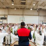 Bishop Joshua began the service in faith to uplift the men and show them how evil spirits work to manipulate a person. He then called forward those who had children in prison, prayed for them and their children’s deliverance, and prayed as well for the salvation of the more than 250 inmates present in the gym.